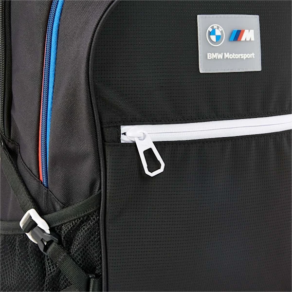 Sleek, structured and seriously sophisticated, the BMW M Motorsport Backpack brings race-ready enthusiasm to your day…every day. Featuring a casual, athletic aesthetic with tri-colored zip closure, an external laptop compartment, adjustable and padded shoulder straps, sleek branding and a comfortable construction, you’ll be lugging your load with fierce fan flair.